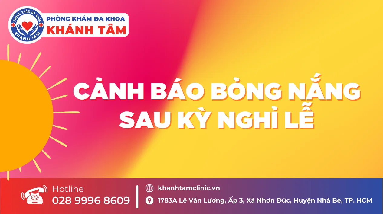 Nắng nóng là điều không thể tránh khỏi trong những ngày hè oi ả. Tuy nhiên, cũng chính vì nắng mà nhiều người phải hứng chịu tác hại của bỏng nắng, đặc biệt sau những kỳ nghỉ lễ dài ngày được dịp đi du lịch, vui chơi ngoài trời. Phòng Khám Đa Khoa Khánh Tâm ghi nhận số lượng trường hợp bỏng nắng tăng cao bất thường sau kỳ nghỉ lễ vừa qua. Bỏng nắng không đơn thuần chỉ khiến làn da bị kích ứng, khó chịu mà còn tiềm ẩn nhiều nguy cơ nghiêm trọng cho sức khỏe nếu không được xử lý đúng cách.